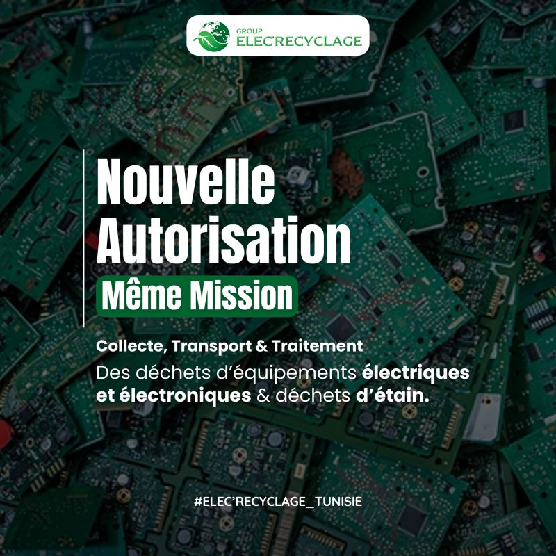 Nous sommes heureux d’annoncer que l’autorisation officielle d’ELEC RECYCLAGE pour la collecte, le transport et le traitement des déchets d’équipements électriques et électroniques (DEEE) ainsi que des déchets d’étain, cette nouvelle autorisation est délivrée pour 5ans.